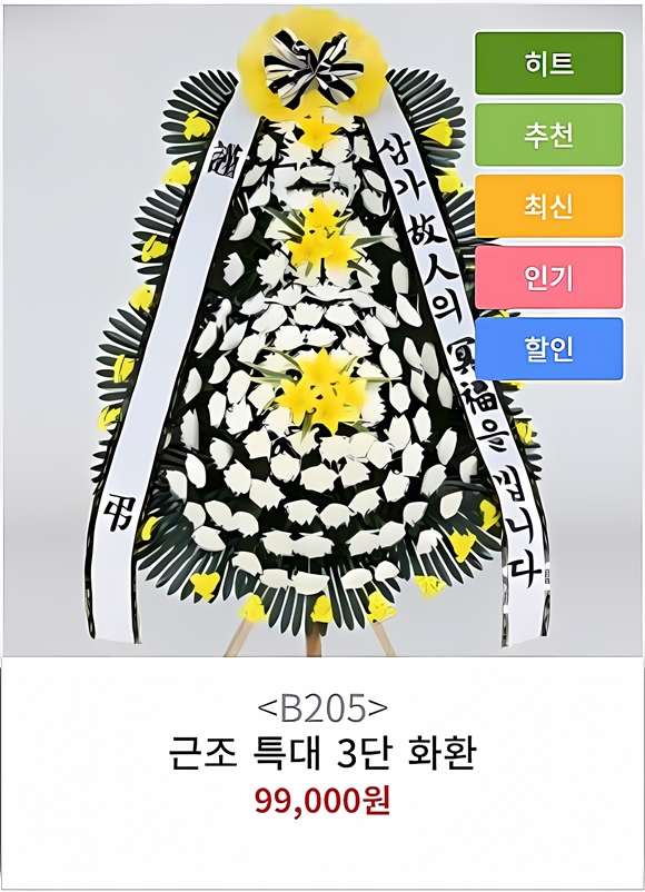 - 효과: 크고 웅장한 디자인으로 고인과 유가족에 대한 깊은 존경과 애도를 표현.