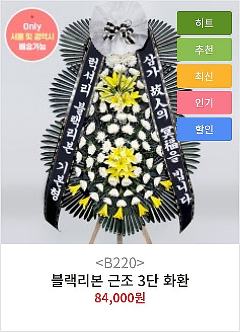 평범한 흰색 리본이 아닌, 특별함을 강조하며 많은 조문객과 다른 화환에 비해 시선이 한 번에 사로잡을 수 있는 블랙 리본을 사용하여 더욱 더 애도와 위로의 마음을 전할 수 있습니다.